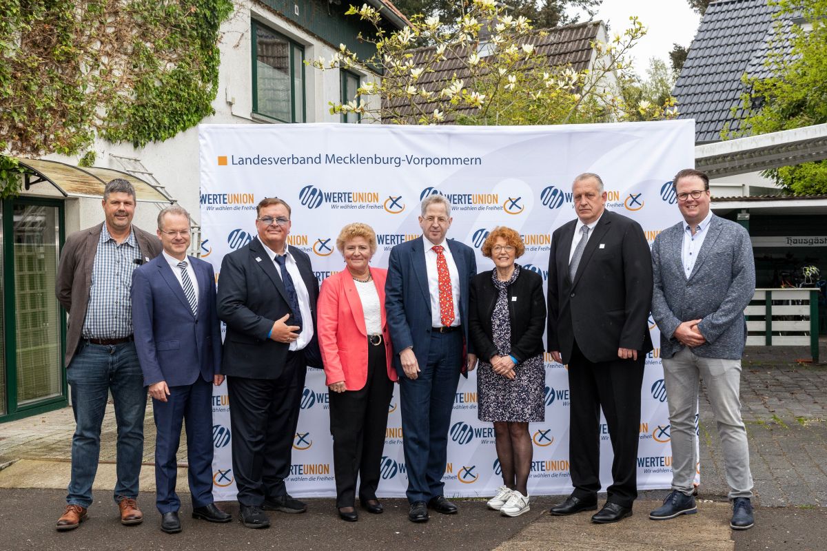 Auf dem Bild von links nach rechts: Mario Mundt, Dr. Matthias Manthei, René Becker, Sylvia Pantel, Dr. Hans-Georg Maaßen, Stefanie Voigt, Daniel Gallien, Dr. Rolf Dahmen Wir wachsen weiter. Die WerteUnion hat am Sonntag, den 5. Mai 2024, in Binz auf Rügen den Landesverband Mecklenburg-Vorpommern gegründet. Nach Thüringen, Sachsen und